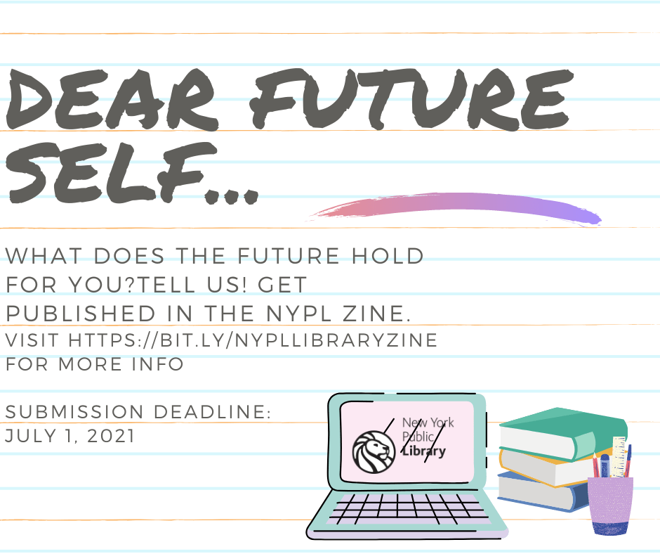 2020 has been a tumultuous year where we have lived in “unprecedented times.” But with our last issue “Raise Your Voice,” Now that we are facing a more hopeful future the NYPL Zine is looking for creative perspectives in which our patrons see themselves approaching a “new normal.” What does the future look like to you?
