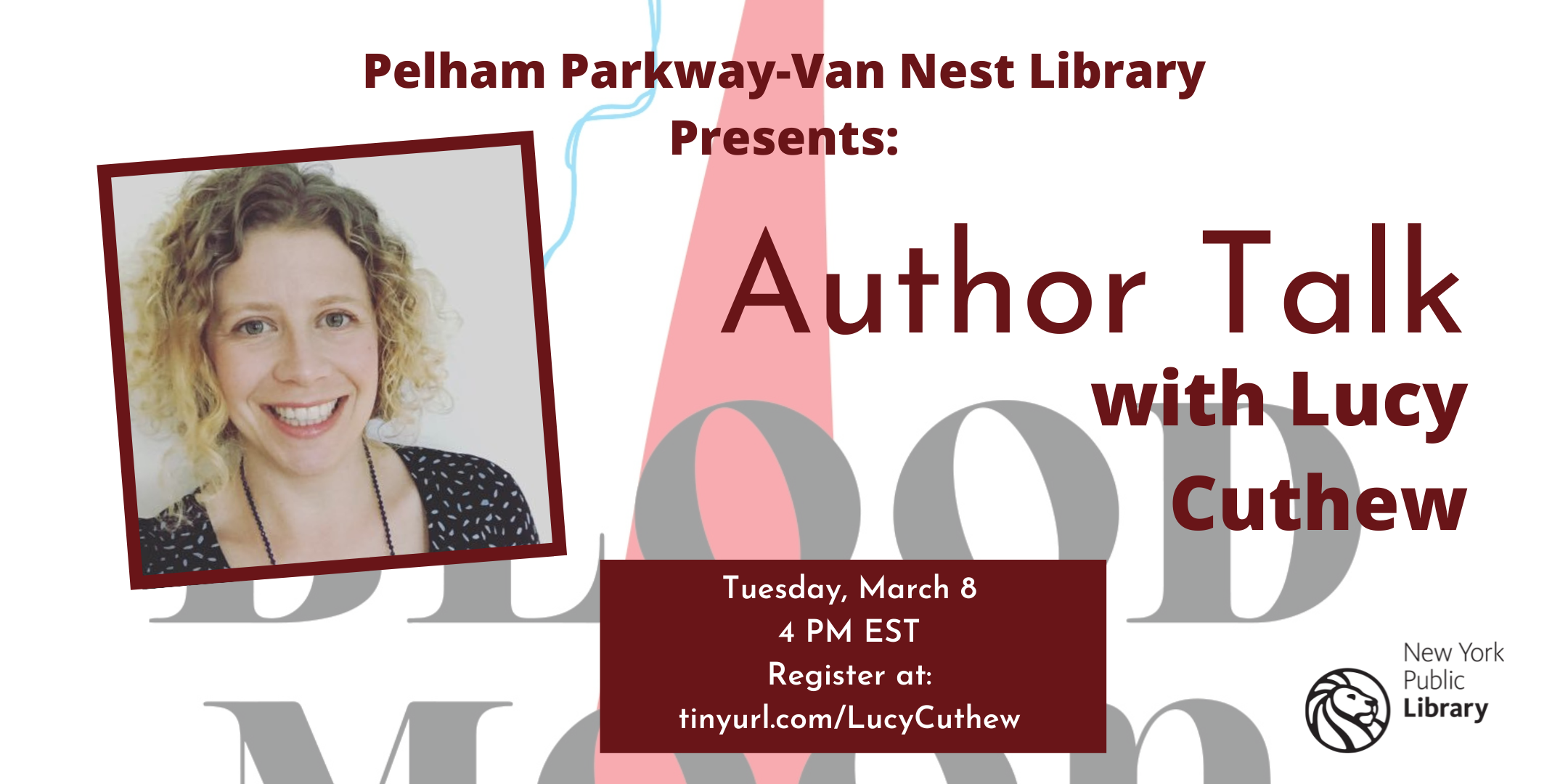 Join Pelham Parkway-Van Nest Library in a discussion with YA author Lucy Cuthew, about her YA debut novel in verse, Blood Moon.